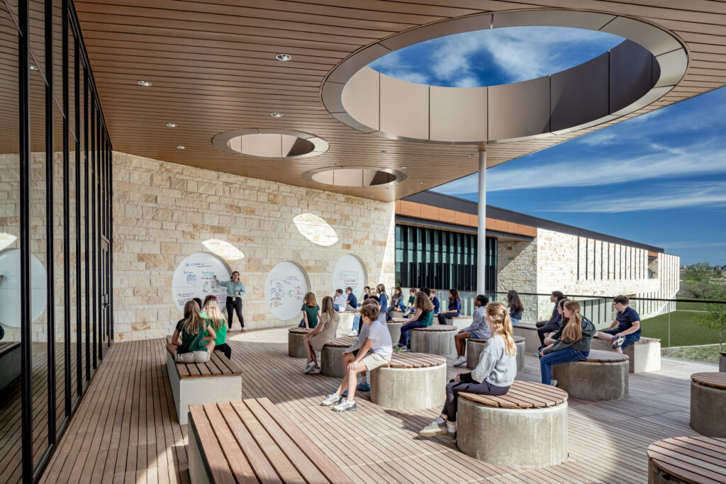 As with most public school projects, Rolling Hills Elementary was shaped by a set of fixed requirements, including Type II-A construction standards, ICC-compliant storm shelters, and district-wide equity goals. The district was particularly conscious of maintaining the right “level of nice,” aiming for a campus that felt uplifting without setting it apart from others in the district. The architects responded by emphasizing durability, clarity, and the quality of everyday spaces.