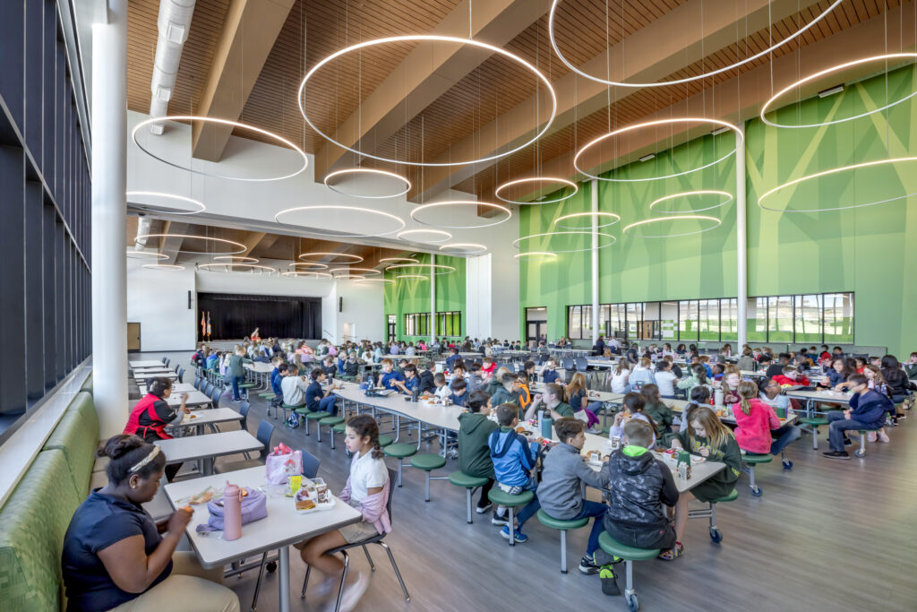 Early in the process, the district encouraged the design team to move away from traditional school layouts. Long corridors and inward-facing classrooms gave way to a plan organized around daylight, visibility, and shared spaces. These choices support student well-being while also helping the school function as an open neighborhood resource rather than an insular institution.