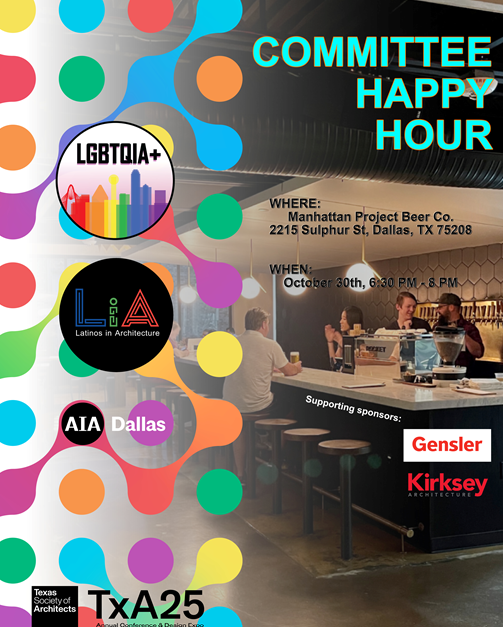 Join the AIA Dallas Latinos in Architecture and the LGBTQIA+ Alliance Networks for drinks, networking, and conversation at Manhattan Project Beer Company the evening of Thursday, October 30. Reflect, share insights, and reconnect with colleagues.